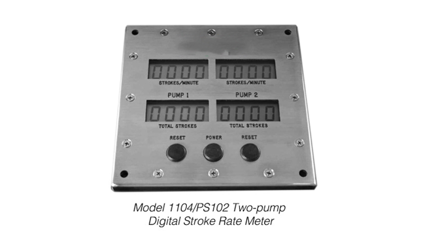 Цифровой измеритель хода с двумя насосами одновременно контролирует и отображает скорость и общий ход до двух отдельных насосов. Устройство непрерывно отображает частоту вращения каждого насоса, общий суммарный ход (общий ход 0-9999) и частоту хода (8-350 ходов в минуту) на большом, легко читаемом ЖК-дисплее с низким энергопотреблением. Устройство работает от аккумулятора и имеет срок службы 3 года.